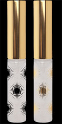 Ein Gloss in zwei Farbnuancen mit Aluminium-Kappe in Gold glänzend und Silber matt.
