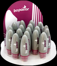 Transparentes, vorgeformtes Tiefziehtray für 18 Lippenpflegestifte Lip2, inkl. bedruckter Hintergrundkarte mit 4c Offsetdruck.